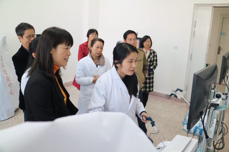 12月9日,副校長黃愛民到臨床技能教學(xué)中心檢查本科審核性評估評建工作,黃愛民聽取了中心負(fù)責(zé)人沈建箴主任關(guān)于中心近年來建設(shè)的最新進(jìn)展和相關(guān)準(zhǔn)備工作的匯報,并認(rèn)真觀看了中心教職人員在新引進(jìn)的3D虛擬解剖臺和虛擬腔鏡手術(shù)系統(tǒng)的上操作演示。黃愛民指出,本科教學(xué)工作審核性評估評建是促進(jìn)學(xué)校發(fā)展的重要工作,各部門要認(rèn)真對待,做好各項迎評準(zhǔn)備。