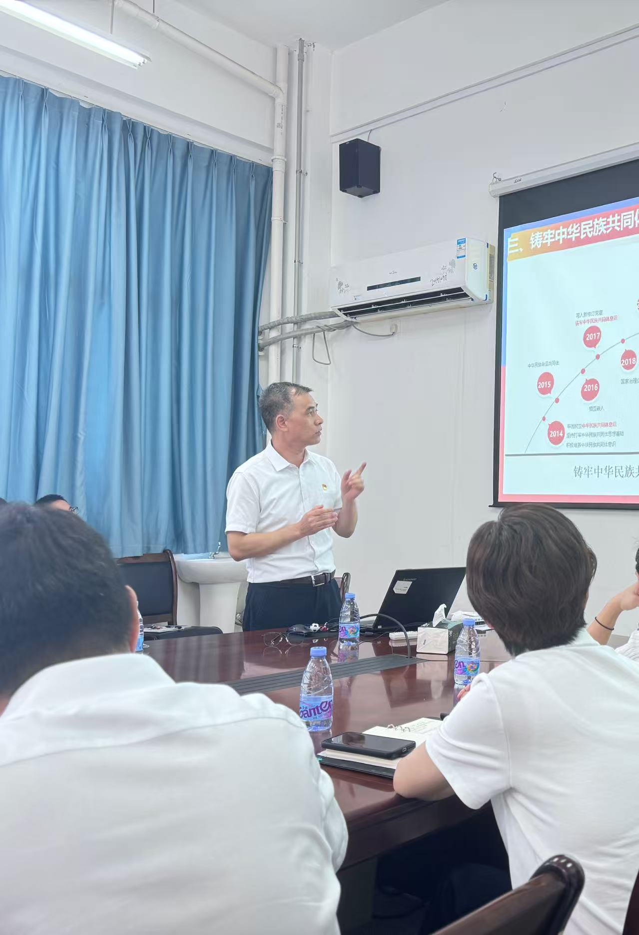 統(tǒng)戰(zhàn)部黨支部劉國(guó)有書(shū)記以《鑄牢中華民族共同體意識(shí),培養(yǎng)堪當(dāng)民族復(fù)興重任的時(shí)代新人》為題上黨課,通過(guò)歷史溯源、理論闡釋與實(shí)踐案例相結(jié)合的方式,讓在場(chǎng)的黨員干部深刻認(rèn)識(shí)到鑄牢中華民族共同體意識(shí)是新時(shí)代黨的民族工作的“綱”,只有鑄牢這一意識(shí),才能增進(jìn)各民族對(duì)中華民族的自覺(jué)認(rèn)同,推動(dòng)中華民族成為認(rèn)同度更高、凝聚力更強(qiáng)的命運(yùn)共同體。