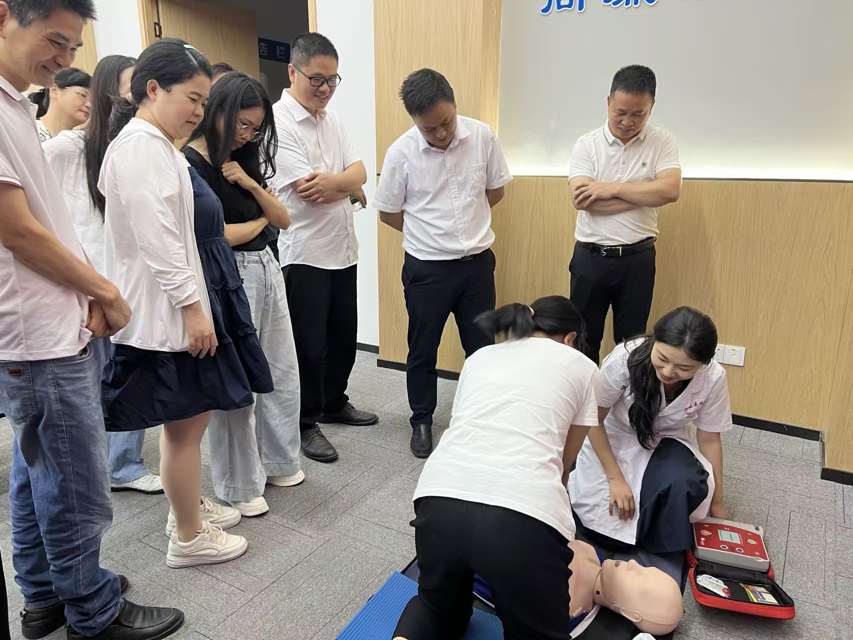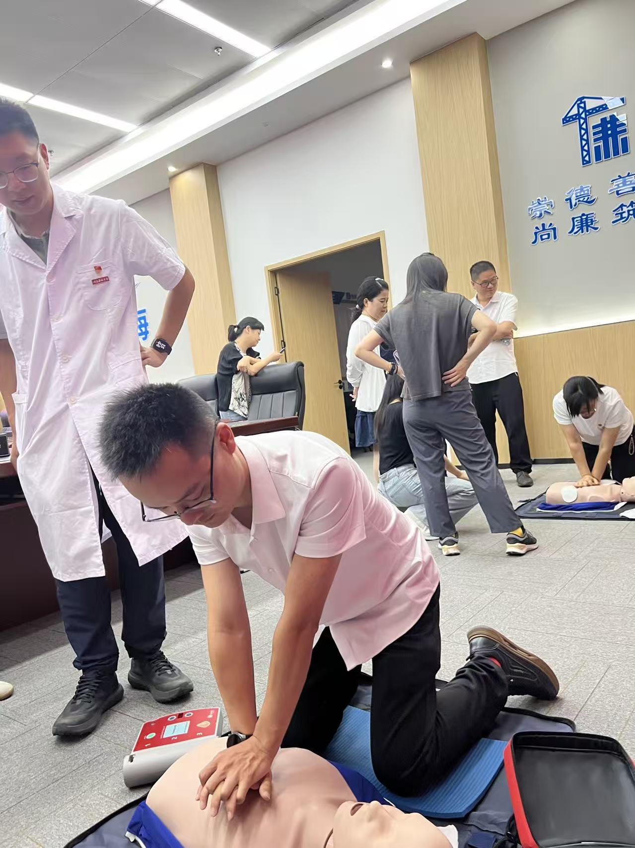 為進一步提升企業(yè)員工的應(yīng)急處置能力,筑牢安全生產(chǎn)與員工健康雙重防線,7月4日,南宮28星火館臨床技能教學中心急救科普團隊走進中國建筑第四工程局(以下簡稱“中建四局”),開展了以“心肺復(fù)蘇 + AED”為主題的科普培訓(xùn)活動,為企業(yè)安全保障體系注入專業(yè)醫(yī)學力量。